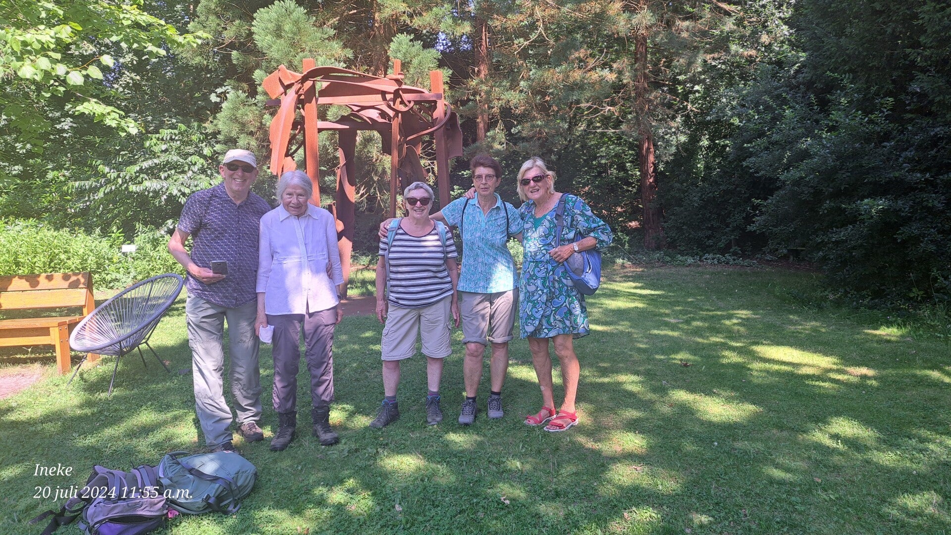 's Ochtends koffie bij Julie's in Bergen. Daarna een wandeling door de beeldentuin van Kranenburgh. Na de lunch wandelden we lekker door de schaduwrijke bossen van Bergen. Na 9,5 km sloten we af met een borrel bij Julie's: een mooie dag.